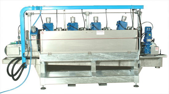 E\' una macchina molto robusta e semplice nei piazzamEnti di cambio utensili o cambio formato, e tutte parti a contatto con l\'acqua sono in acciaio inox e la struttura è zincata a caldo.