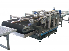 Macchina taglio Jolly 3 teste, per grandi formati. La larghezza del nastro è di 1600. Le 3 teste da taglio hanno una potenza di 4Kw cadauna. La macchina è fornita di riscontro con cinghia motorizzata per facilitare il trasporto su nastro delle piastrelle.