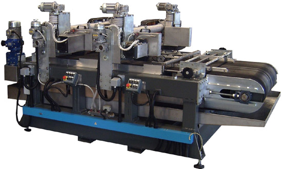 Macchina da taglio per grandi formati, con nastro di trasporto disponibile in varie misure. La macchina può supportare da 4 a 6 teste da taglio, ognuna delle quali ha una potenza di 4Kw. Sulla macchina, come optional, si può richiedere il posizionamento automatico di misura delle teste, impostandolo dal quadro elettrico, su schermo touch screen.